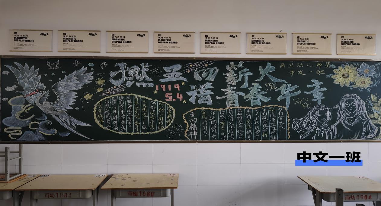 为纪念五四运动106周年,传承“爱国、进步、民主、科学”的五四精神,激发青年学子的责任担当,语言文化学院开展了弘扬五四精神的主题黑板报创作活动。各班级积极响应,以笔墨丹青绘就青春誓言,在校园内掀起弘扬五四精神的热潮。